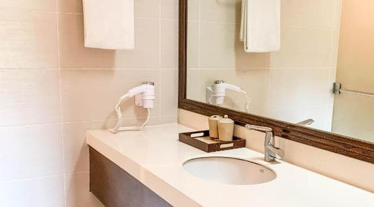 Combining traditional local designs with modern amenities, each room at Misibis Bay has air conditioning and comes with an LCD cable TV, a DVD player, and a safety deposit box, as well as coffee making facilities. The en suite bathrooms comes with a hairdryer and free toiletries while others are fitted with a bathtub.
