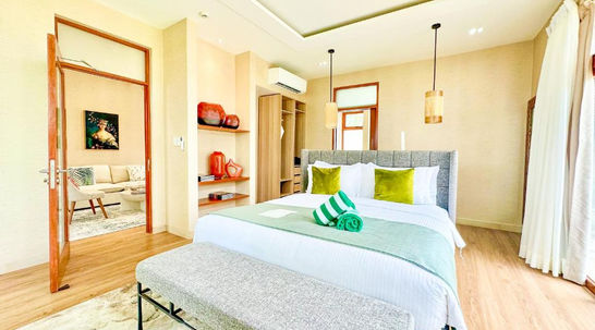 This air-conditioned room comes with a view of the pool, a living room with 46-inch LCD cable TV, and a dining area with a minibar and coffee maker. The bedroom has a 40-inch LCD TV with cable channels while the en suite bathroom is fitted with a shower and bathtub.